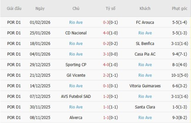 Phong độ của Rio Ave