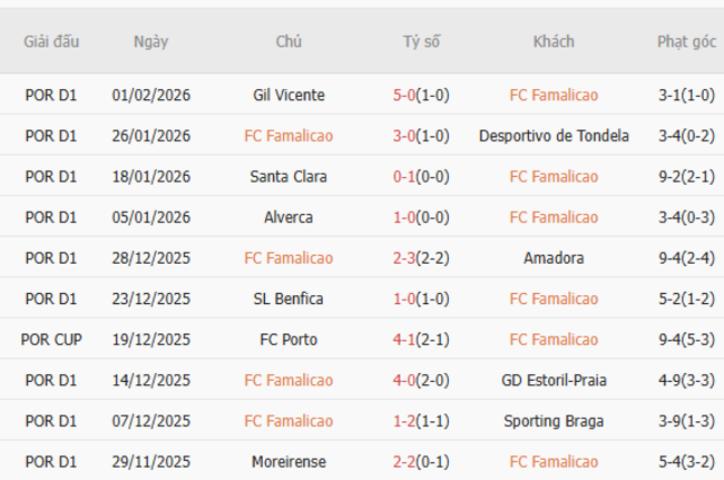 Famalicao đã hy vọng giành trọn 3 điểm tại Barcelos cuối tuần trước, sau khi thắng liên tiếp hai trận đấu ở giải vô địch quốc gia, nhưng sự thiếu kỷ luật đã tước đi mọi cơ hội của họ và khiến họ sụp đổ. Đội bóng của Hugo Oliveira hiện đang đứng thứ tám trên bảng xếp hạng Primeira Liga - kém top 4 7 điểm và hơn khu vực đá play-off trụ hạng 12 điểm, với 24 bàn thắng và 19 bàn thua.