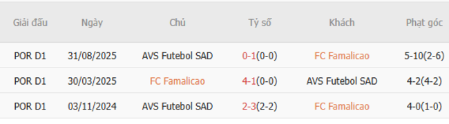 Thành tích đối đầu quá khứ giữa FC Famalicao vs AVS Futebol SAD