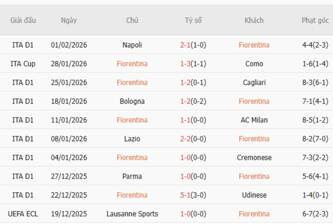 Ngay khi Fiorentina tưởng chừng như đang xoay chuyển tình thế sau nửa đầu mùa giải tệ hại, ba trận thua liên tiếp đã chặn đứng đà tiến đó. Trước khi đối đầu với Jagiellonia Bialystok ở vòng play-off Conference League sắp tới, Fiorentina phải chạm trán với Como đang có phong độ cao một lần nữa, sau khi tiếp đón Torino trên sân nhà. Ít nhất thì lịch sử sẽ đứng về phía đội chủ nhà vào cuối tuần này, khi họ chỉ thua một trận duy nhất trong 35 lần gặp nhau gần nhất tại Florence, thắng 19 trận.