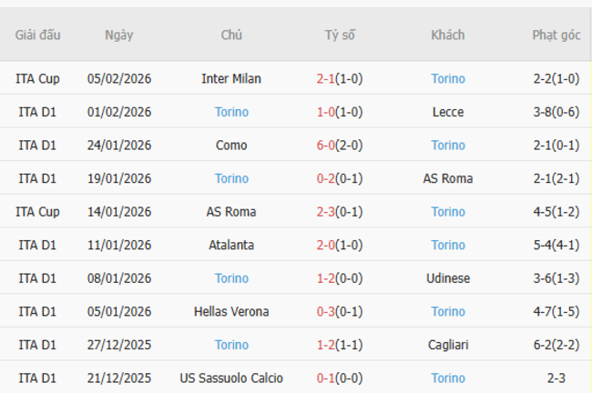 Phong độ của Torino