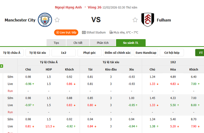 Trên đây là những nhận định và soi kèo bóng đá chuyên sâu cho màn thư hùng giữa Man City vs Fulham, 02h30 ngày 12/02/2026.