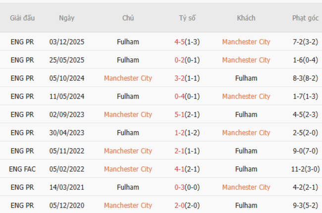 - Kết quả chung cuộc: Man City 3-1 Fulham