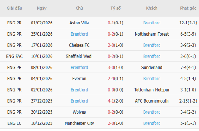 Phong độ của Brentford