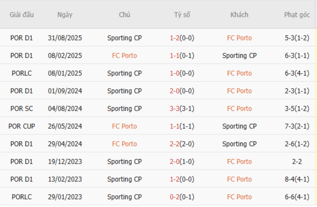Thành tích đối đầu quá khứ giữa Porto vs Sporting CP
