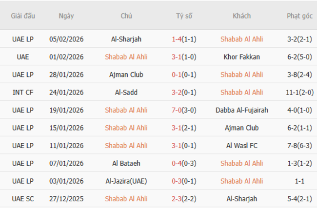 Phong độ của Shabab Al Ahli