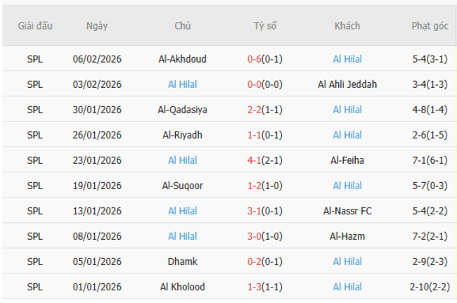 Hiện tại, ngoài việc có thành tích toàn thắng tại AFC Champions League, Al Hilal đang dẫn đầu giải quốc nội với 50 điểm sau 20 vòng đấu. Đáng kinh ngạc, Al Hilal hiện đang có chuỗi 29 trận bất bại trên mọi đấu trường và tỷ lệ thắng lên đến 83%. Trong trận đấu đầu tiên khoác áo Al Hilal sau khi rời Al Ittihad, Karim Benzema đã có màn trình diễn tuyệt vời, lập hat-trick vào lưới Al Okhdood.