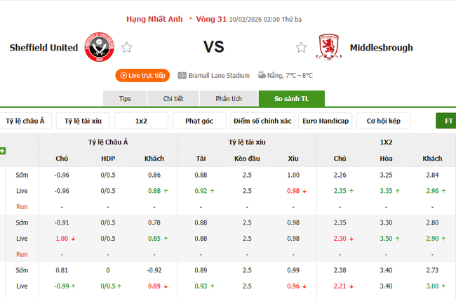 Nhận định soi kèo Sheffield United vs Middlesbrough, 03h00 ngày 10/02/2026