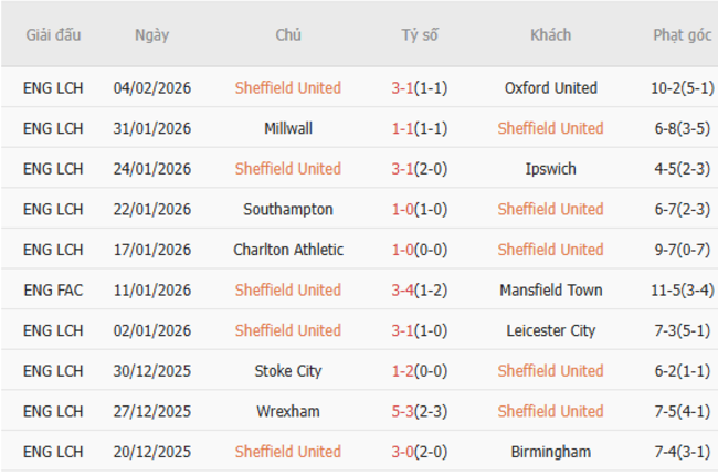 Phong độ của Sheffield United