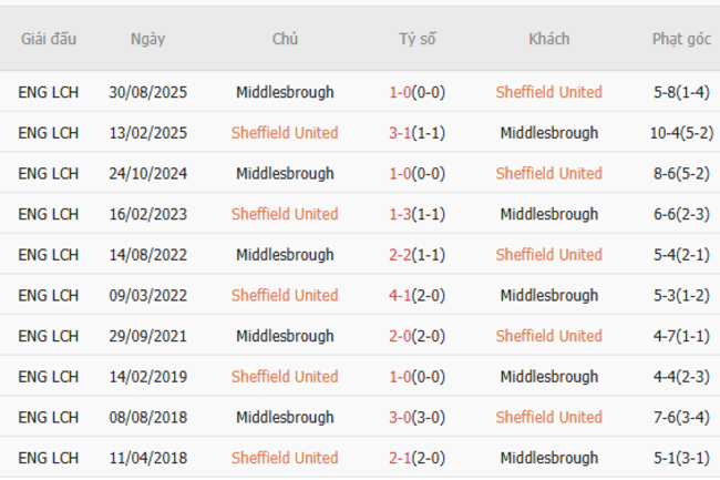 Thành tích đối đầu quá khứ giữa Sheffield United vs Middlesbrough