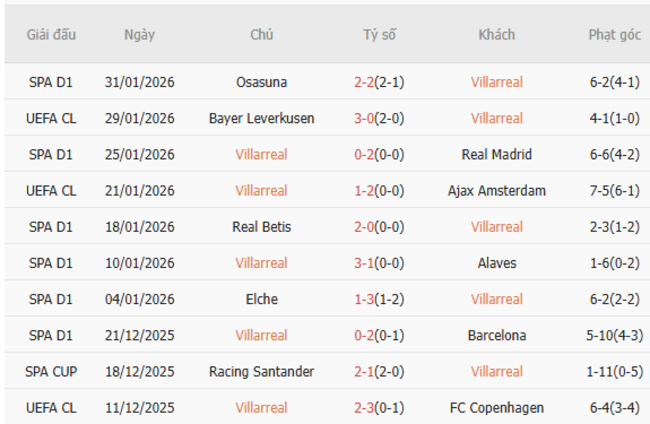 Trên thực tế, Espanyol chưa giành được chiến thắng nào tại giải đấu hàng đầu Tây Ban Nha kể từ trận thắng Athletic Bilbao 2-1 vào ngày 22 tháng 12, vì vậy đây là một khởi đầu khó khăn cho năm 2026. Đội bóng của Gonzalez đã phải chịu thất bại 2-0 trước Villarreal trong trận lượt đi hồi đầu mùa giải, trong khi đó, ở trận đấu lượt về mùa giải 2024-2025, họ lại để thua 1-0 trước "Tàu ngầm vàng".