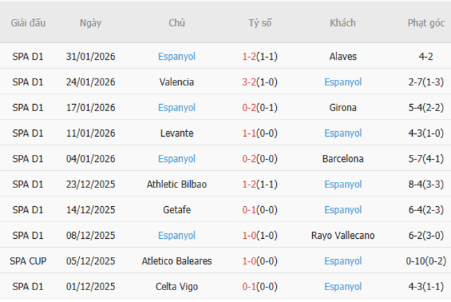 Phong độ của Espanyol