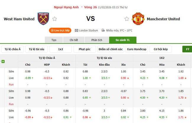 Trên đây là những nhận định và soi kèo bóng đá chuyên sâu cho màn thư hùng giữa West Ham vs Man United, 03h15 ngày 11/02/2026.